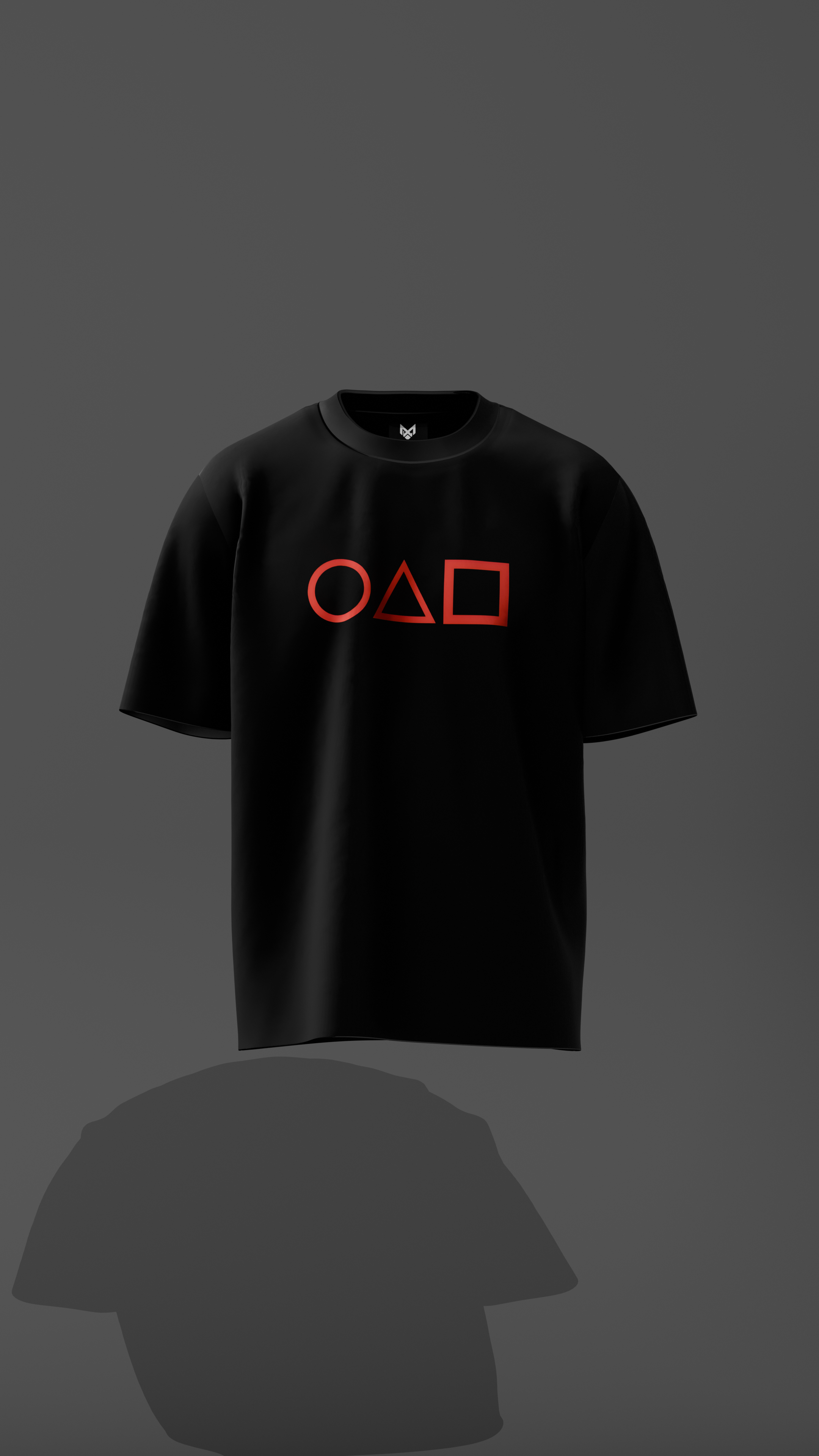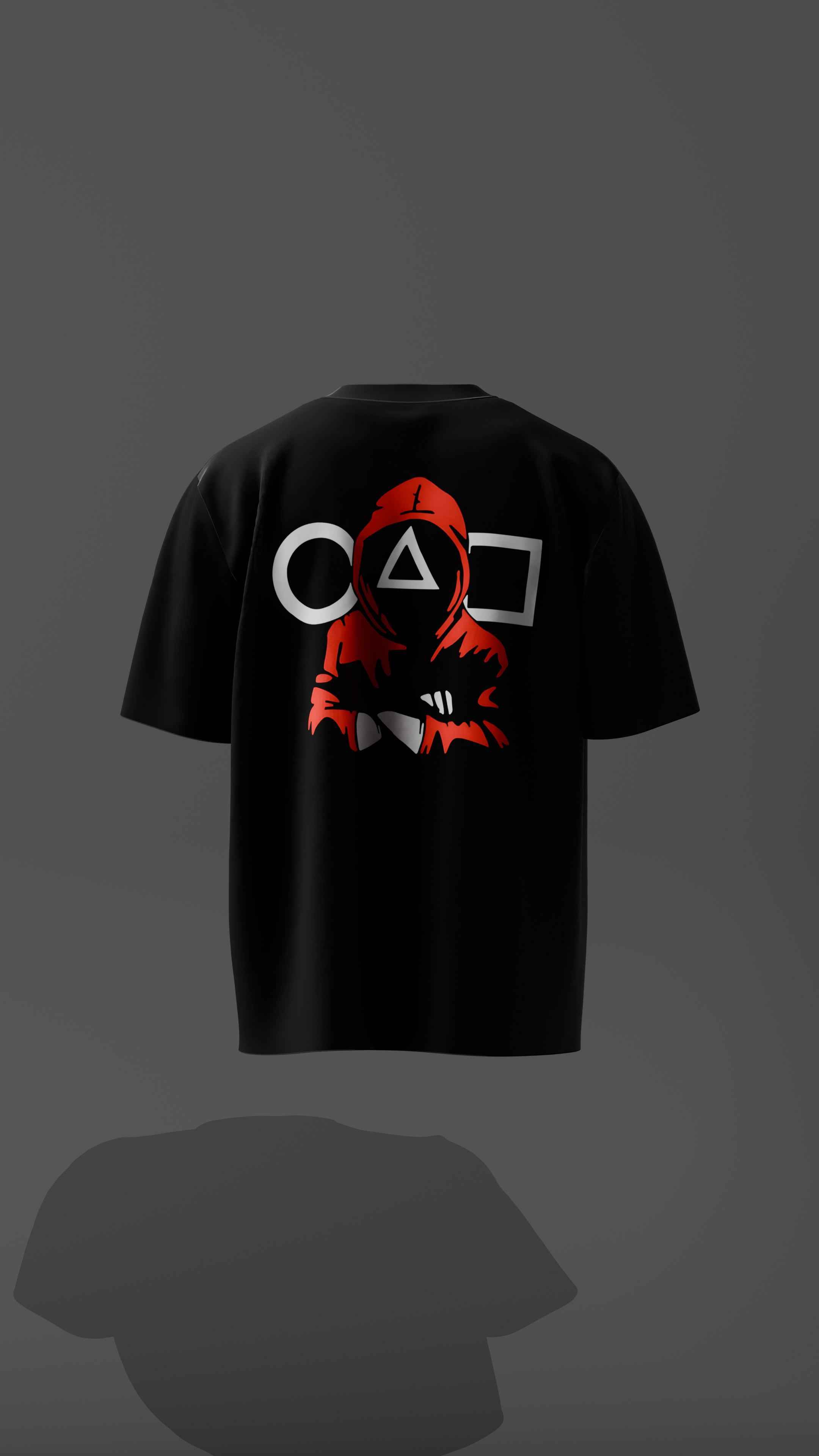 • Command attention with this Dual-Side Squid Guard Tee featuring bold front and back prints of the iconic circle, triangle, and square symbols. The front keeps it minimal with red geometric shapes, while the back explodes with the masked guard artwork, giving it a striking K-drama edge. Crafted in premium black cotton and cut in a boxy oversized fit, it's the perfect mix of stealth and street.