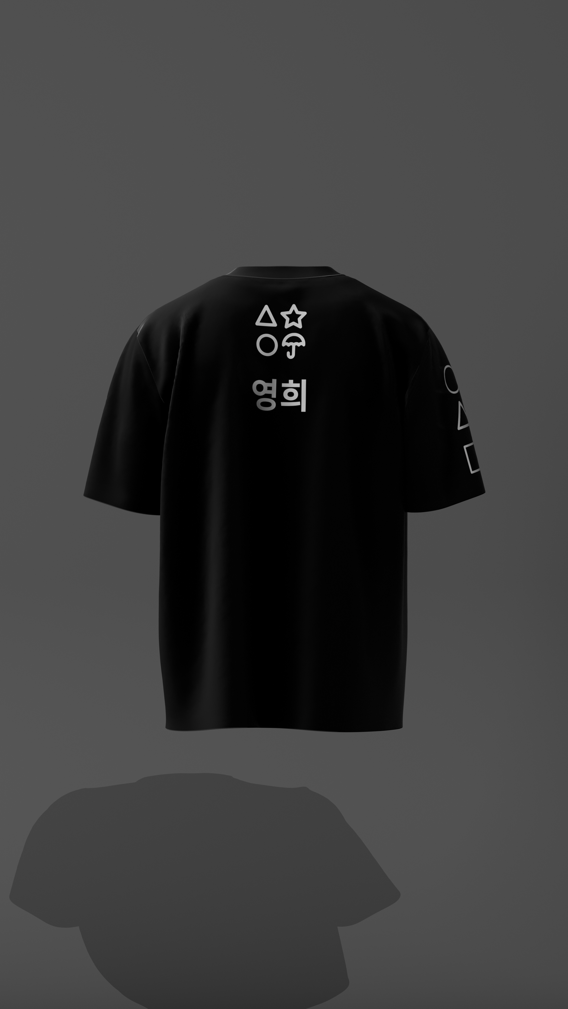 • Level up your streetwear game with the Player 456 Survival Tee. This black oversized t-shirt draws from the intense energy of the Squid Game universe, featuring the iconic 456 player number on the chest and bold Korean text down the side. The back print showcases signature game symbols that true fans will instantly recognize. Built from heavyweight cotton, this piece blends K-drama intensity with modern streetwear edge.