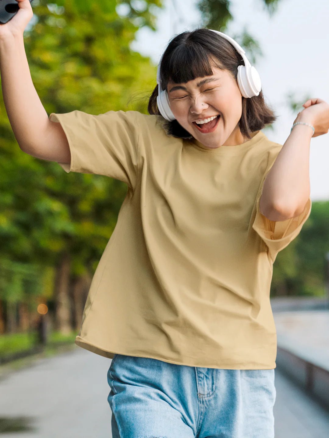 Women's Beige Oversized T-Shirt | Casual Relaxed Fit Cotton Tee